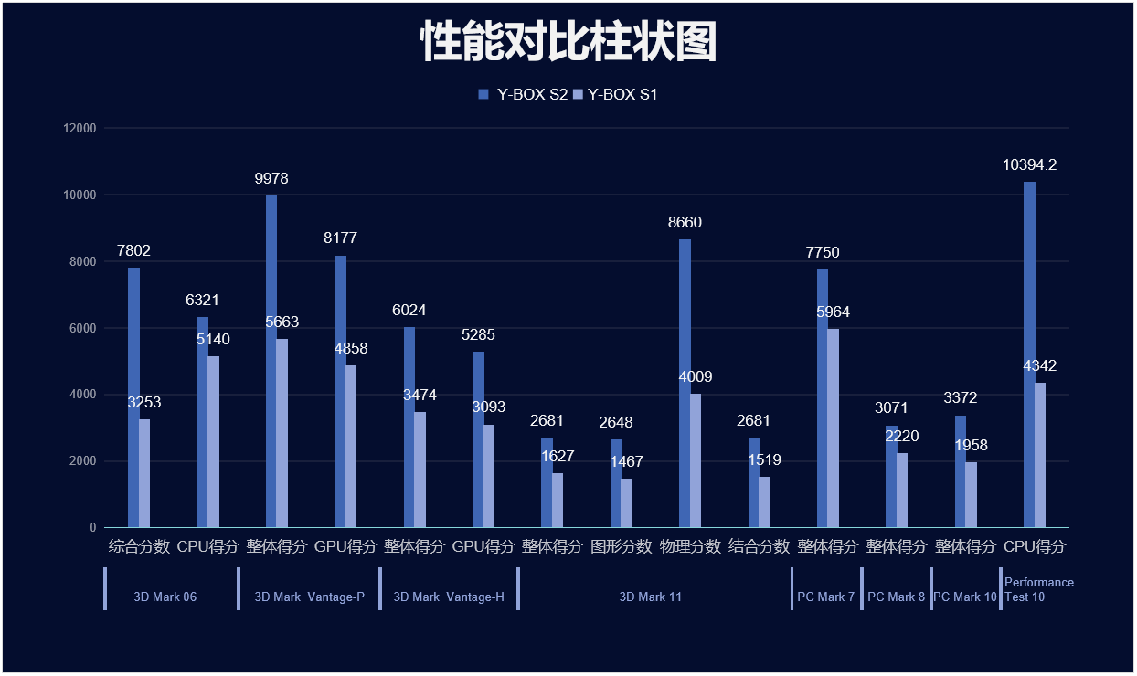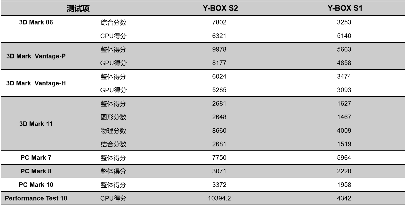 LETOU - 乐投(中文)官方来具体看看各个测试项目的跑分情况,测试项目包括显示性能测试、系统性能测试、CPU性能测试,分别用3D Mark、PC Mark以及Performance 10等系列不同软件的跑分数据,针对两款主板的跑分情况可以看出,LETOU - 乐投(中文)官方桌面云终端Y-BOX S2的数据在各项性能上都得到了大幅度提升,柱状图能更直观地体现出数据的变化,LETOU - 乐投(中文)官方将针对具体的几项数据来进行详细分析。