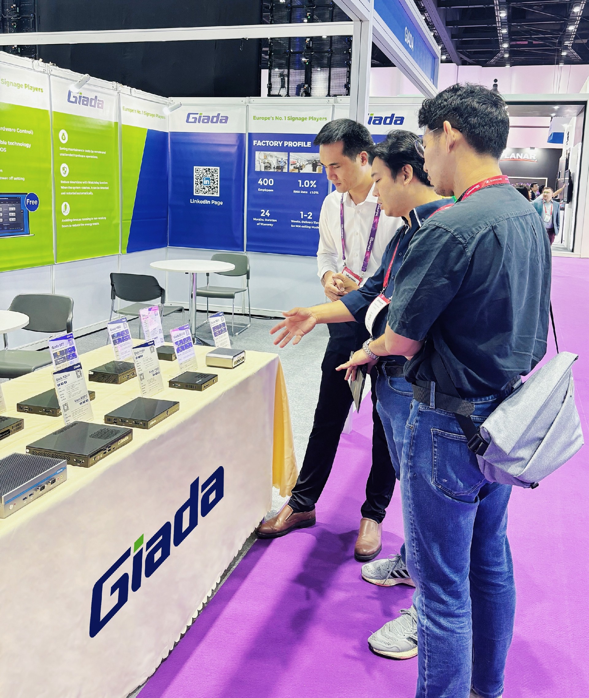 除此之外,GiadaLETOU - 乐投(中文)官方科技展示一系列数字标牌播放器、户外嵌入式整机、OPS/SDM及嵌入式主板等明星产品,并带来一系列量身定制的解决方案,以满足东南亚地区的具体需求。