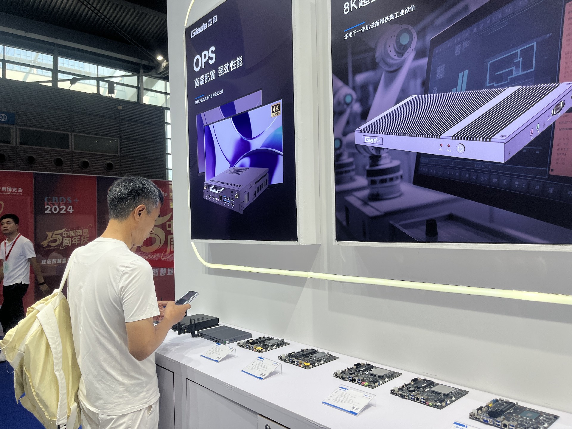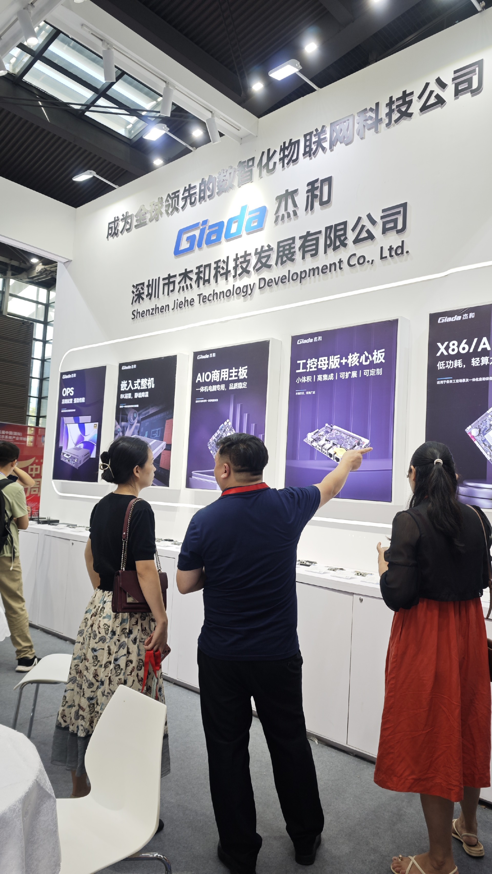 LETOU - 乐投(中文)官方科技展位放置在c位的明星产品和最新产品吸引了众多参观者的目光。展台下方整齐排列着公司的产品,包括主板、嵌入式整机、OPS等,这些产品不仅适用于商业展示领域,还广泛应用于工业、制造业和教育业等多个行业。