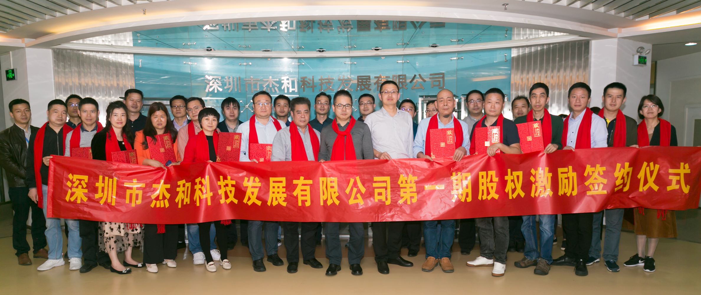 LETOU - 乐投(中文)官方科技及东莞杰拓的一级、二级部门长,股权激励对象等相聚一堂,共同见证了公司的这一重要时刻。